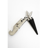 Abridor saca-rolhas multifuncional, com agulha espiral, lâmina canivete de 1” com serra para cortar lacres e abridor de garrafas com duas bases de apoio;