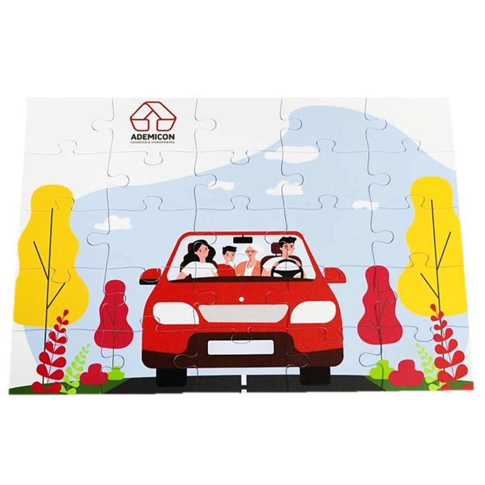 O Quebra Cabeça Infantil traz ilustrações criativas que abordam os temas de consórcio de imóveis, veículos e serviços.